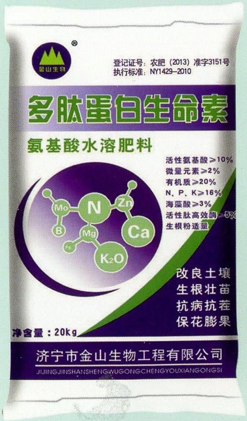 產(chǎn)品特點:本品以動植物的營養(yǎng)液為主要原料.經(jīng)科學的加工工藝和特殊的配方制成的全溶有機肥,內含有有機多肽蛋白和各種活性酶,及各種核酸、黃腐酸等各種有機活性物質,還含有氮,磷、鉀、鈣、鋅、硼、硫、鐵等大中量元素。并添加7多種生物菌,能全面平衡植物營養(yǎng),促進作物生長,改善土壤又能抗病的好肥料。 規(guī)格:20kg